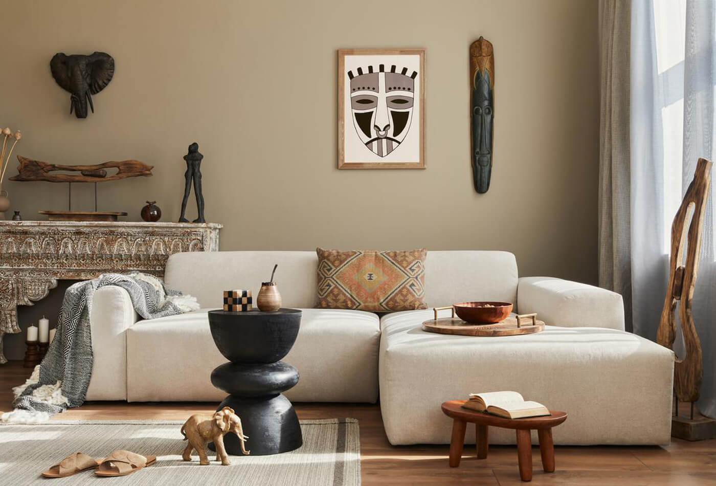 Walls may be adorned with colourful textiles, masks, and artworks reflecting Côte d’Ivoire’s rich artistic traditions. Baoulé and Guro masks, often used in ceremonies, are prized decorative items, while woven kente and indigo cloths add bursts of colour. Pottery, gourds, and calabash bowls are used both functionally and decoratively, linking the modern household with ancestral traditions.